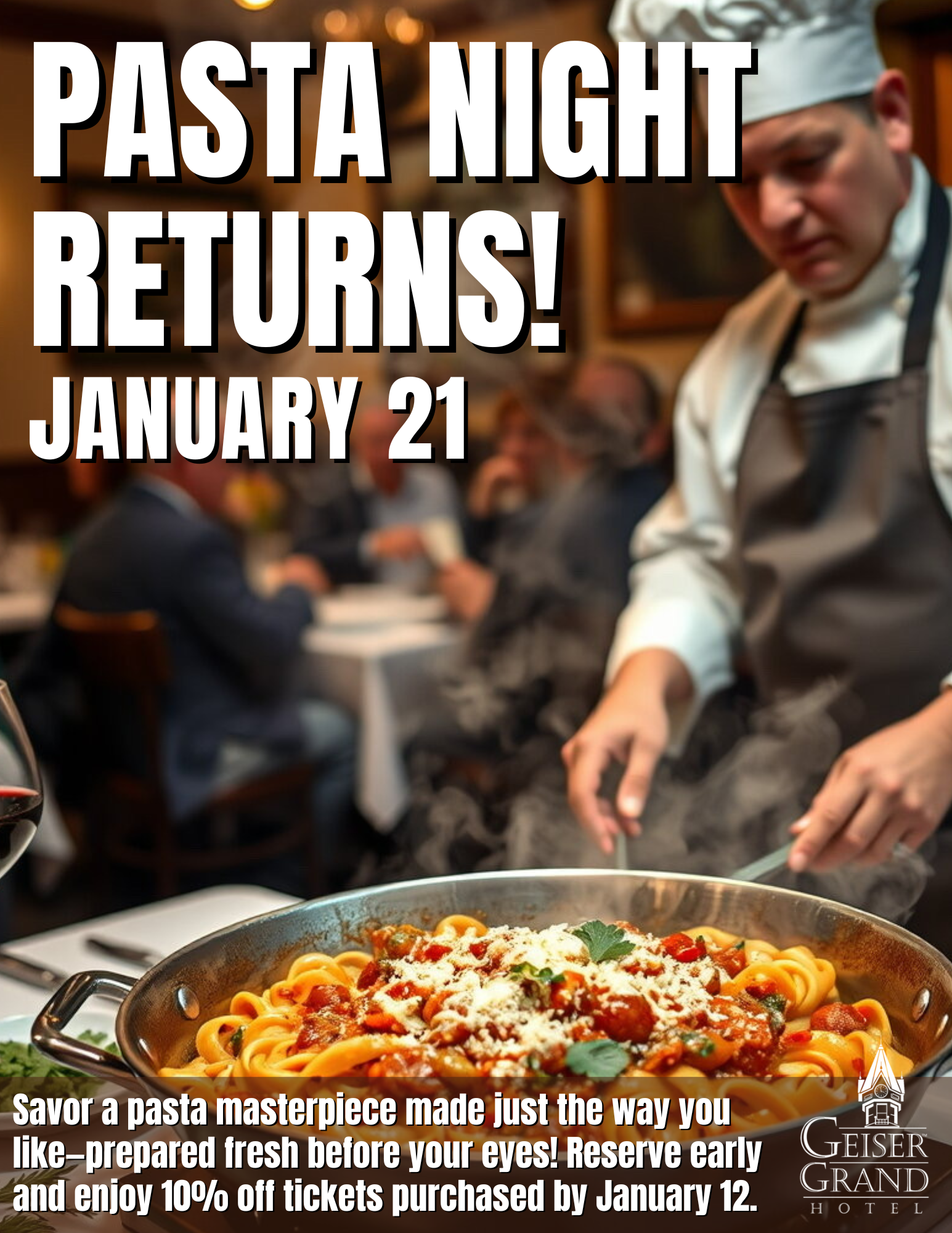💲Advance Purchase: Just $22 when you buy by January 12 Reserve your spot early—Pasta Night always sells out!
